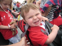 Anyway kids dressed in their Team GB t-shirts and we were safely installed in our car. We had expected to queue today but for the most part we were pleasantly surprised – excellent parking and shuttle service, followed by a lovely 2km stroll in the sunshine to the venue and a very slick security process (Heathrow could learn a thing or two). Only slight complaints were the long queues for free water and expensive food which meant we missed the first two races. Kids lasted a good couple of hours in the stand. All in all a lovely day where we got to talk freely to perfect strangers (wish it were possible to do this more often) and were welcomed warmly by some very helpful volunteers. Definitely a day for GB to feel proud.
