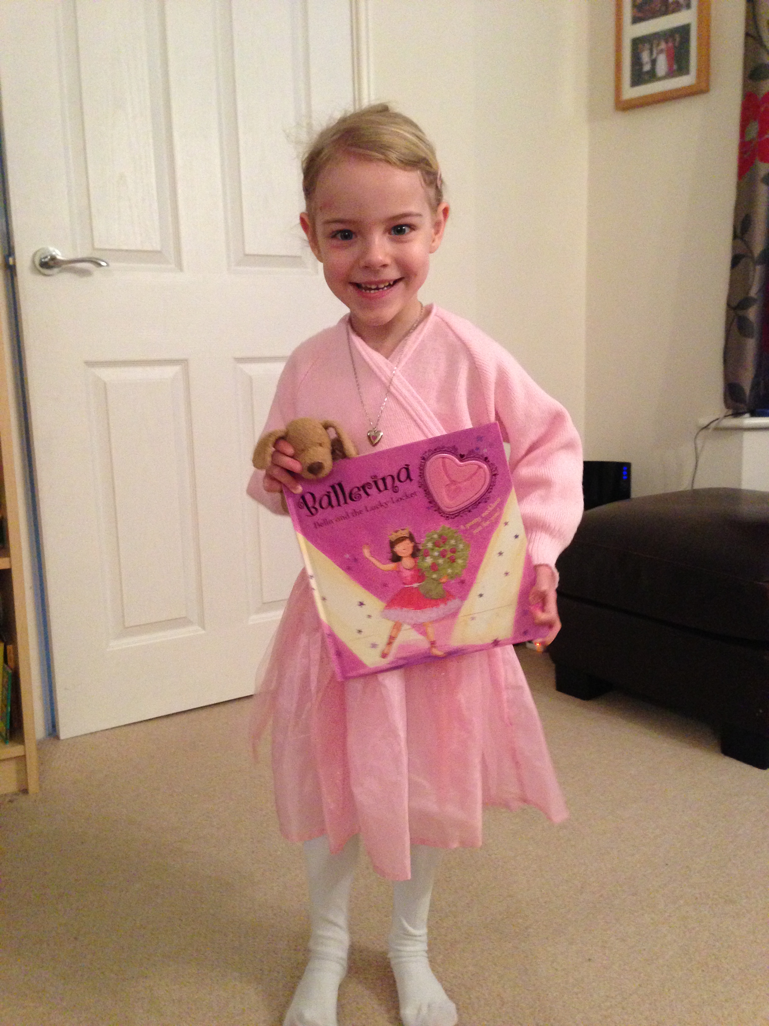 To celebrate World Book Day, the little lady dressed as Ballerina Bella from “Ballerina Bella and the Lucky Locket“. Coincidentally it is Ava’s ballet day today. I wonder whether the ballet cardigan will survive a day at pre-school…