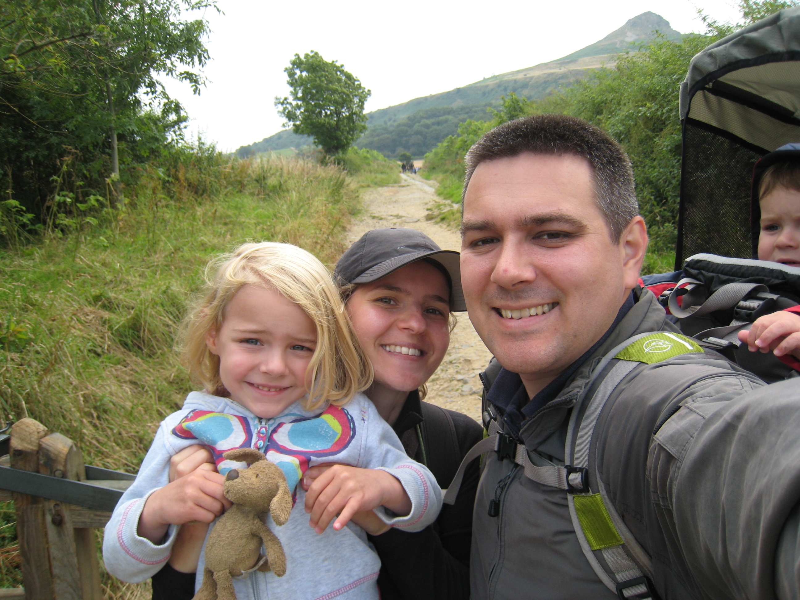 I was going to entitle this post ‘Scaling new heights’ but then realised that I had already used this title for my last blog post – doh as one Homer Simpson might say. Anyway we are currently staycationing at Andy’s parents in Stockton and are using the opportunity to explore the local area. In all of the nearly 13 years Andy and I have been driving up the A19 past Roseberry Topping, on the way to his parents, we have always without exception said ‘we must walk up there one day’. Our excuses to date for not doing this have been along the lines of ‘it’s too cold’ (to be fair to us we usually travel up this way around Christmas time) and ‘we haven’t got enough time’. We could hardly use the temperature as an excuse, with the car thermometer soaring above 20 degrees and the time factor certainly didn’t apply, as we are here for a week. Now you could hardly blame us if we used the children as a reason not to scale Roseberry Topping this time. I mean what person in their right mind takes a 3 year old who is liable to whinge at the distance and difficulty and a 1 year old who must be close to 25lbs (this is only significant as he was going to make the ascent in the Daddy taxi), up a mountain (ok hill, but it is as good as a mountain to a 3 year old who is only 97cm tall!)? Anyway Andy had made the decision, which is a fairly rare occurrence in this household, and we were going despite my protestations of ‘it looks like rain’ and ‘what if Ava falls off the side?’.